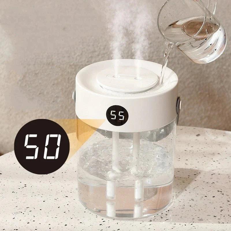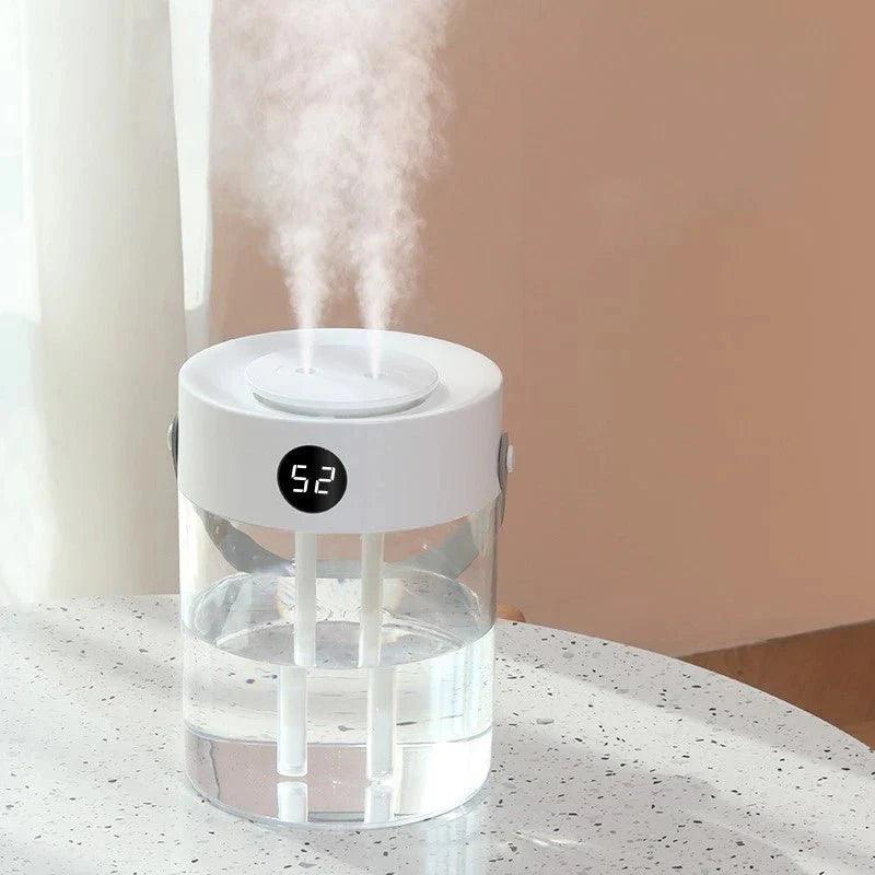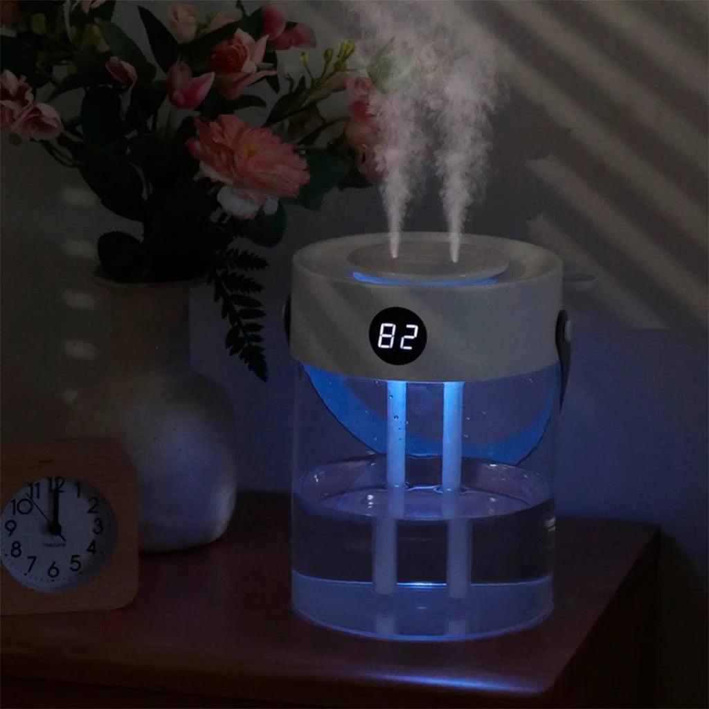 O umidificador possui design de bico duplo, com função de umidificação rápida, proporcionando uma experiência confortável e refrescante.