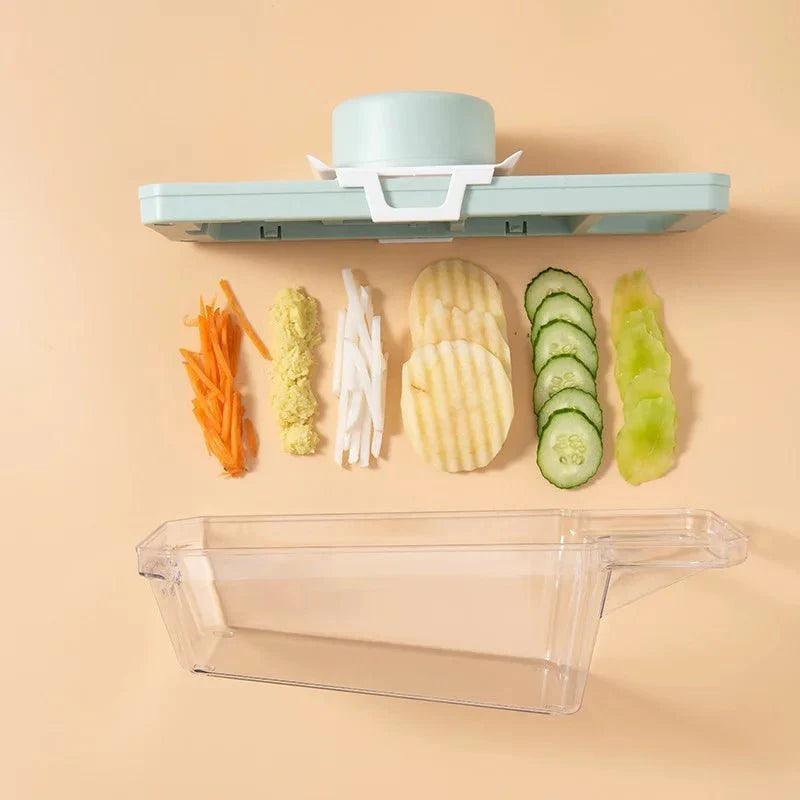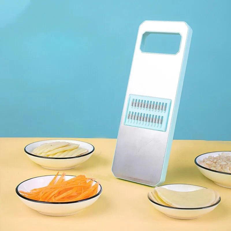 Diversidade de Lâminas e Durabilidade: Com uma variedade de lâminas e fatiadores à sua disposição, o cortador de legumes é ideal para a preparação de uma variedade de pratos. Feito com aço inoxidável de alta qualidade, o cortador de legumes é durável, resistente à corrosão e pode ser facilmente limpo, proporcionando uma experiência culinária sem preocupações.
